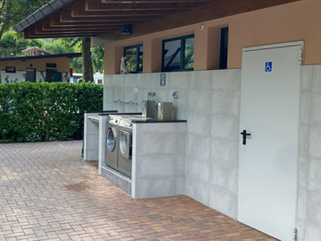 Sanitäre Anlagen mit WC, Duschen inkl. kostenfreiem Warmwasser, Waschbecken, Babybereich, Waschmaschinen, Trockner, Geschirrspülbereich