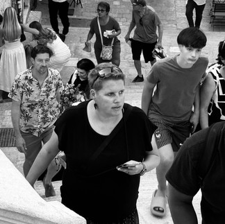 Das Parkhaus liegt oberhalb der Altstadt von Dubrovnik. Wir sind auf dem Weg runter, aber der ist nichts für Flip-Flops – steil und voller Treppen.