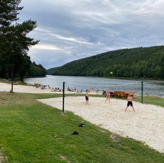 Wenn man mit Hund reist, ist es auch wichtig, dass für Auslauf gesorgt ist. Auch das ist ohne weiteres hier machbar. Direkt vom Platz aus geht ein schöner Wanderweg zuerst in den Wald und dann am Zlotnickie Seeufer entlang. Die Hunde dürfen hier auch baden und sich austoben.