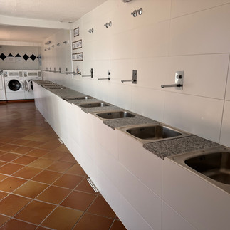 Die sanitären Anlagen wirklich hübsch und sehr gepflegt. Die Plätze sindeher lang wie breit, aber allesamt schattig.
